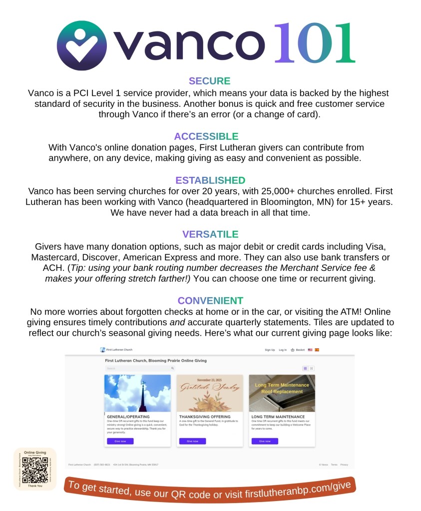 Give Give Now Give My Christmas Offering administered by Vanco Payment Solutions fast-convenient-secure one-time or recurrent set up profile or be a guest Generosity and grace are Lutheran values. Each dollar furthers our mission-thank you! Share this: Click to print (Opens in new window) Print Click to email a link to a friend (Opens in new window) Email More Click to share on Facebook (Opens in new window) Facebook Click to share on Tumblr (Opens in new window) Tumblr Click to share on X (Opens in new window) X Like Loading...